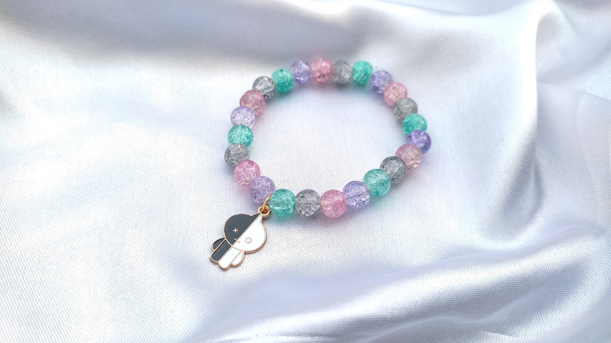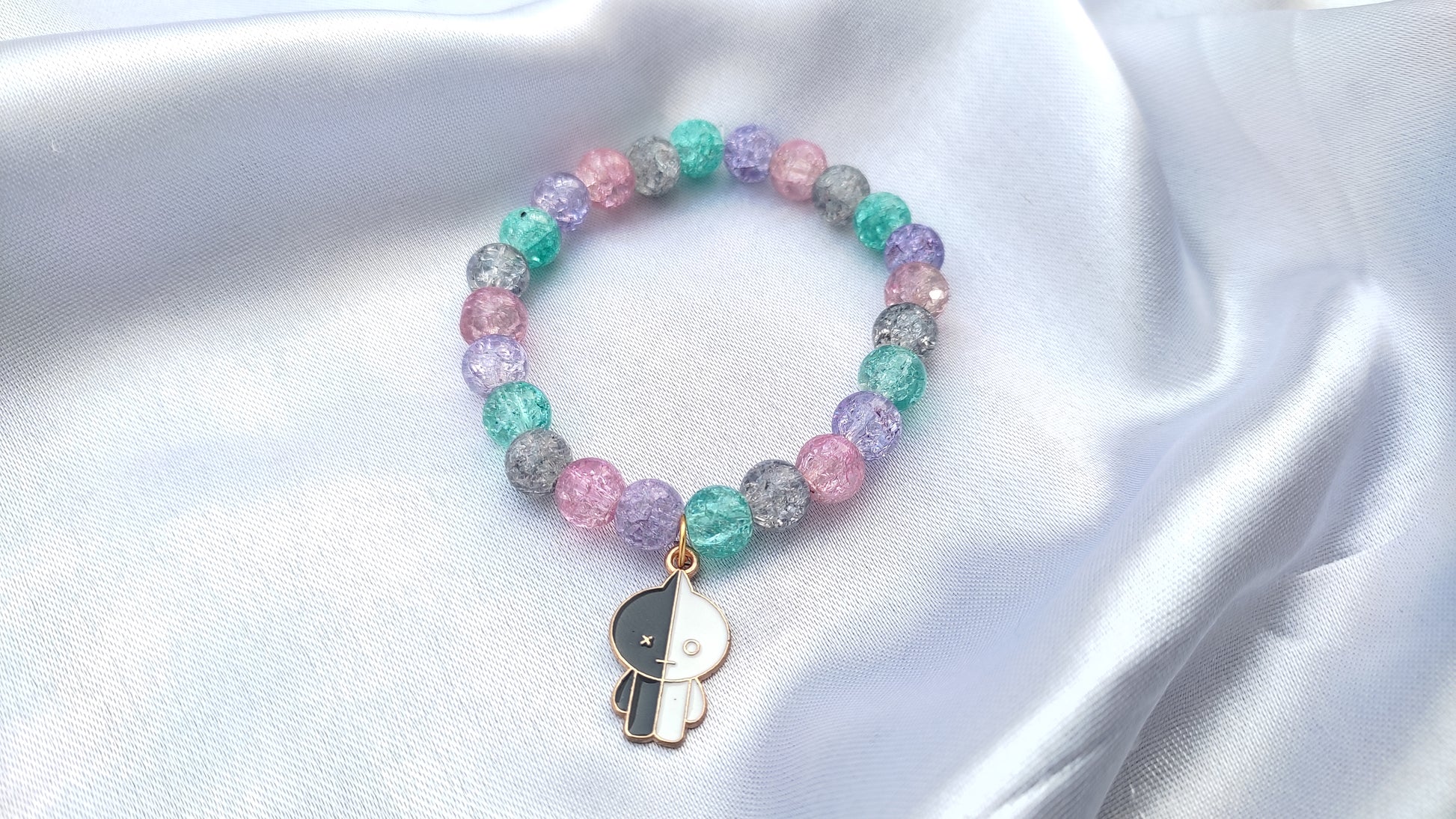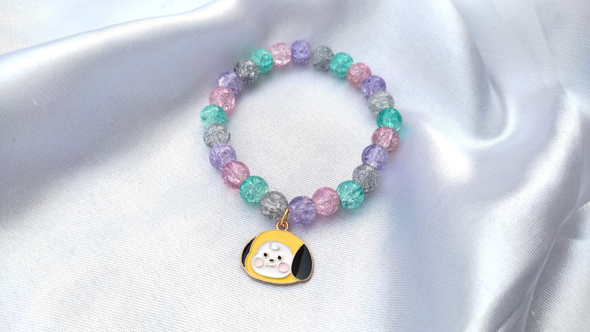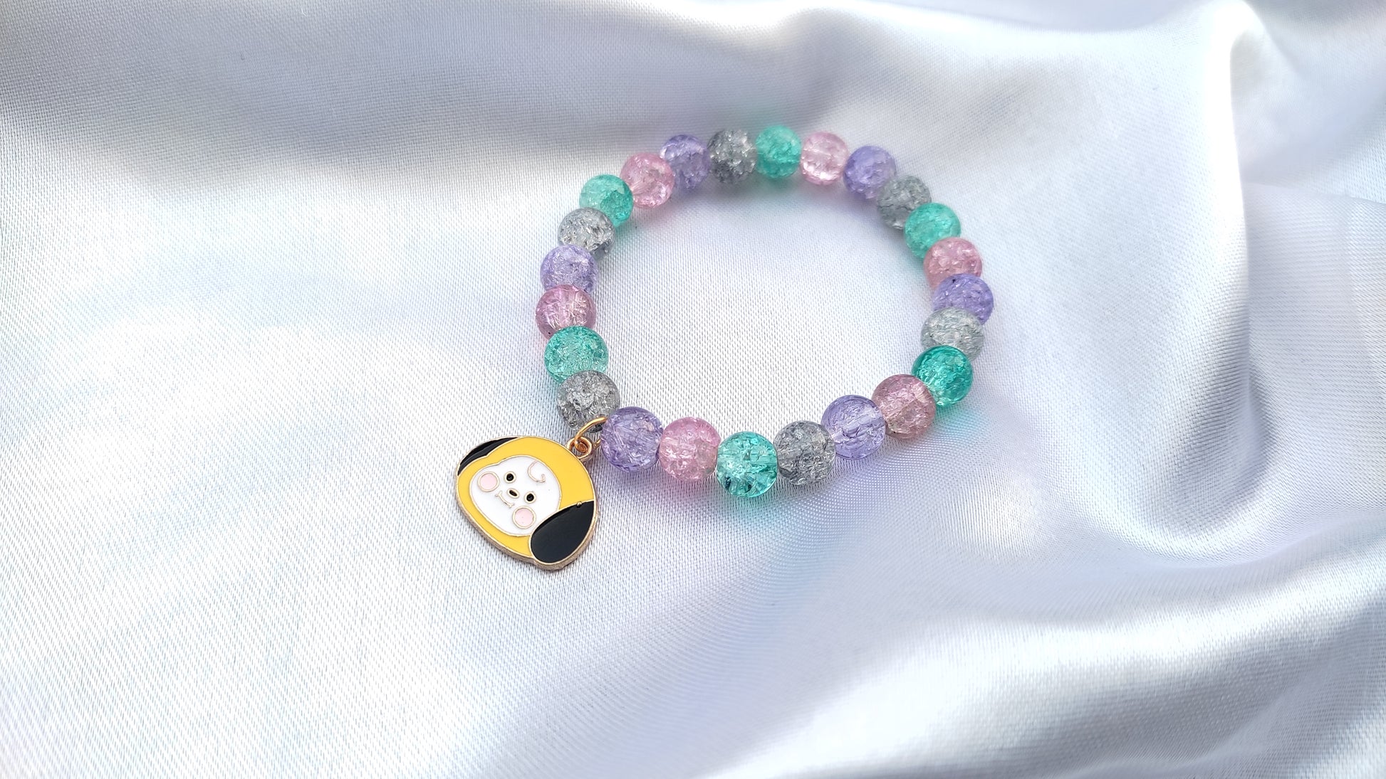 Jewelsbysirani presents beautiful bts bt21 charcter ( cooky, chimmy, tataa,shooky, rj, koya,mang,van)beads bracelet for girls and women. Pretty evil eye charm attached multi-coloured ,high quality , shining glass beaded bracelet . A multi occasional bracelet which compliments your every outfits whether its your casual/office wear or party wear , its a must have jewellery pieces for your wardrobe. Stretchable sizing which can be worn by anyone. A perfect gift for bts army/ lovers